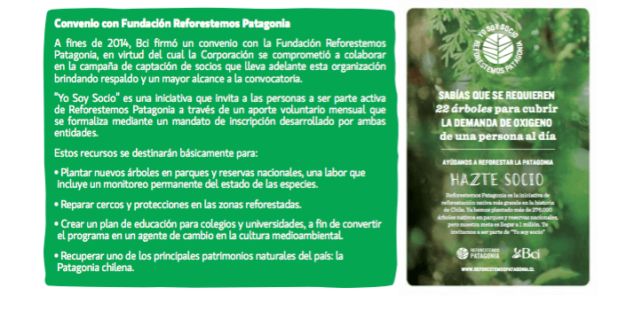 Banco BCI desde el año 2012 nos incluye en su informe de sustentabilidad realizando donaciones de árboles nativos anualmente.